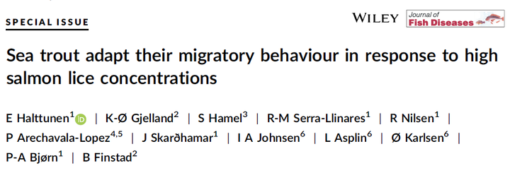 Sea trout face growth–mortality trade-offs when entering the sea to feed. Salmon lice epizootics resulting from aquaculture have shifted these trade-offs, as salmon lice might both increase mortality and reduce growth of sea trout. We studied mortality and behavioural adaptations of wild sea trout in a large-scale experiment with acoustic telemetry in an aquaculture intensive area that was fallowed (emptied of fish) synchronically biannually, creating large variations in salmon lice concentrations. We tagged 310 wild sea trout during 3 years, and gave half of the individuals a prophylaxis against further salmon lice infestation. There was no difference in survival among years or between treatments. In years of high infestation pressure, however, sea trout remained closer to the river outlet, used freshwater (FW) habitats for longer periods and returned earlier to the river than in the low infestation year. This indicates that sea trout adapt their migratory behaviour by actively choosing FW refuges from salmon lice to escape from immediate mortality risk. Nevertheless, simulations show that these adaptations can lead to lost growth opportunities. Reduced growth can increase long-term mortality of sea trout due to prolonged exposure to size-dependent predation risk, lead to lower fecundity and, ultimately, reduce the likelihood of sea migration.