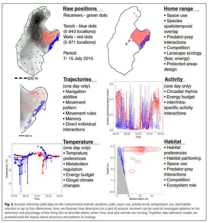 Movement ecology is increasingly relying on experimental approaches and hypothesis testing to reveal how, when, where, why, and which animals move. Movement of megafauna is inherently interesting but many of the fundamental questions of movement ecology can be efficiently tested in study systems with high degrees of control. Lakes can be seen as microcosms for studying ecological processes and the use of high-resolution positioning systems to triangulate exact coordinates of fish, along with sensors that relay information about depth, temperature, acceleration, predation, and more, can be used to answer some of movement ecology’s most pressing questions. We describe how key questions in animal movement have been approached and how experiments can be designed to gather information about movement processes to answer questions about the physiological, genetic, and environmental drivers of movement using lakes. We submit that whole lake telemetry studies have a key role to play not only in movement ecology but more broadly in biology as key scientific arenas for knowledge advancement. New hardware for tracking aquatic animals and statistical tools for understanding the processes underlying detection data will continue to advance the potential for revealing the paradigms that govern movement and biological phenomena not just within lakes but in other realms spanning lands and oceans.